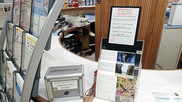 一旁的問卷回收桶,填完問卷撕下來,另一半就是漂亮明信片