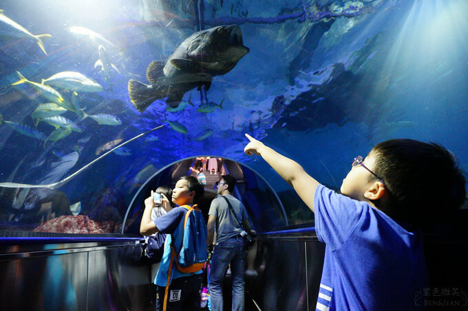 接近出口的最後一區有個水族館,裏面不但有冷氣清涼暢快,我們也花了近一個小時才逛完呢,因為多樣的水族生物,海底隧道裏,真的太吸引人了,玩到欲罷不能!!