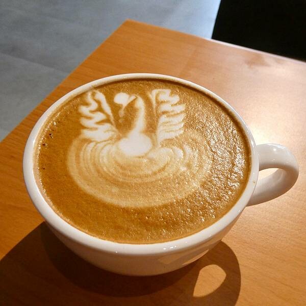 這杯拿鐵是帶有大人味苦感的拿鐵,店家拉花是一隻天鵝,好美的天鵝唷!拉花也拉得很漂亮,喝到最後還真的還有天鵝在誒!微苦的拿鐵配上蛋糕真的很適合。