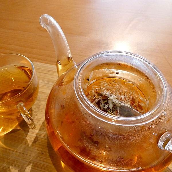 博士茶的香氣,加上香壽菊菊花花瓣,有菊花香氣的博士茶,味道很棒也很舒壓,回沖兩次就好了,我很喜歡這壺茶。