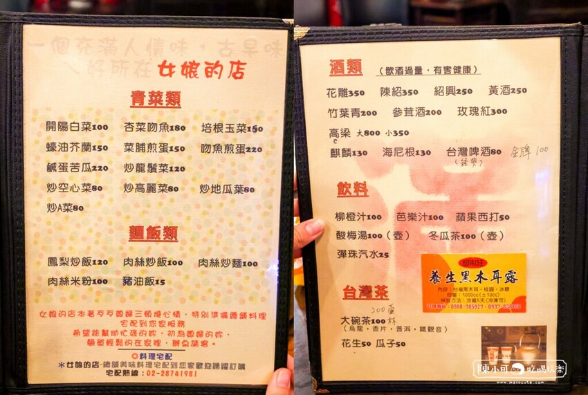 「女娘的店」菜單以台式傳統料理為主,汽車可以停路邊或附近停車場,要吃女娘的店記得先打電話訂位,臨時去可能會沒位置喔!