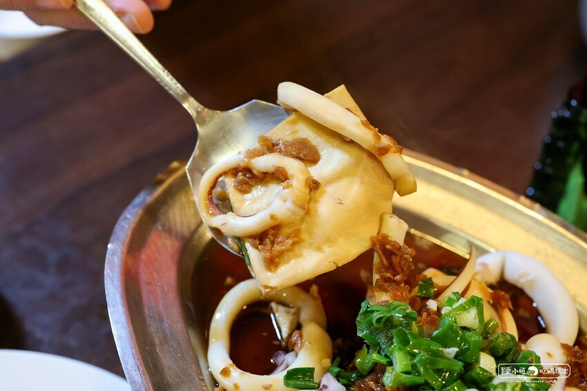 透抽Q彈新鮮,香氣濃郁的香蒜和豪邁的蔥香提味,底下還有入味的板豆腐,嫩嫩滑滑的相當下飯。