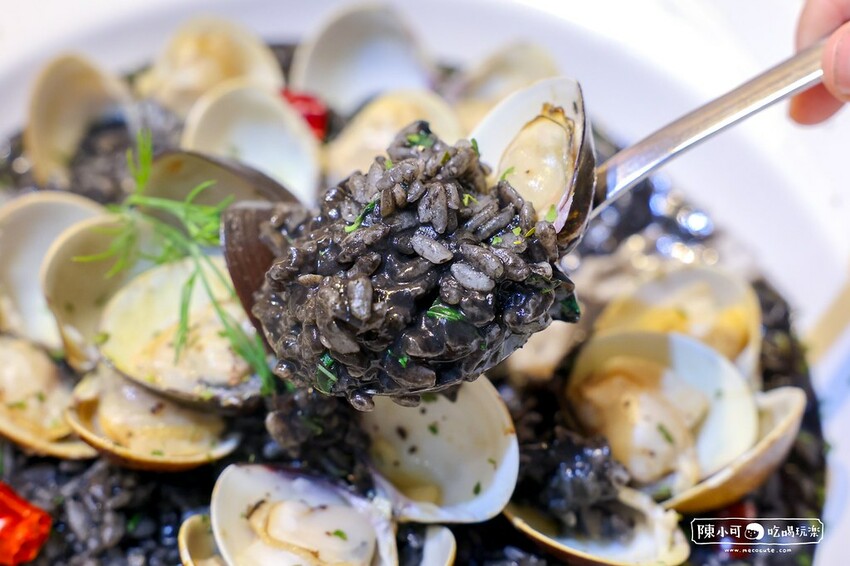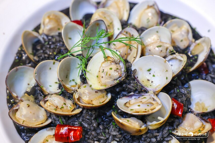 又黑又亮的燉飯米粒融合了墨魚醬的獨特風味,蛤蠣的湯汁讓米飯散發著深邃的鮮味,讓人食慾大開。米粒口感保持著剛剛好軟糯度,帶著微微的嚼勁,讓每一口都能感受到飯粒的彈性,一點點辣非常開胃。
