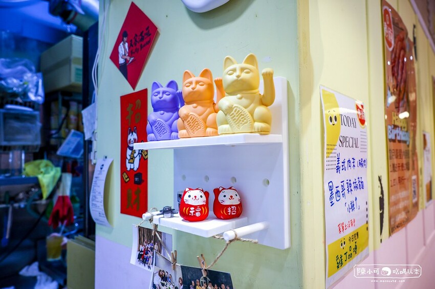 走進店內先看到左側半開放式廚房,吸引我目光的就是可愛的貓咪公仔,可愛又吸睛。牆上除了貼出菜單還有當月壽星內用優惠活動。