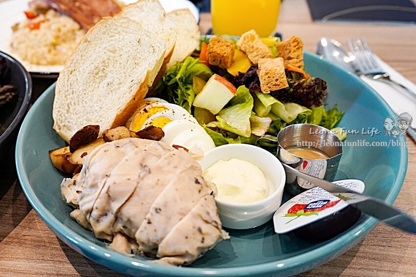 早午餐系列會提供手作麵包、時蔬沙拉、水煮蛋跟柳橙汁,