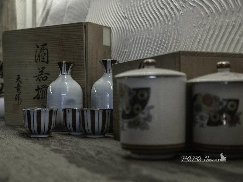 木質X古物豐富我的視野,老闆花了不少時間收藏與整理吧,小時候媽媽都說用眼睛看不要亂摸別人的東西,養成用眼睛看觀察事與物,有著歲月痕跡的皮件包裹著這台老相機,老舊音響,還有各種日式杯子…我猜這裡不適合12歲以下孩子進入,危險的不只是孩子還有爸媽的荷包(認真)