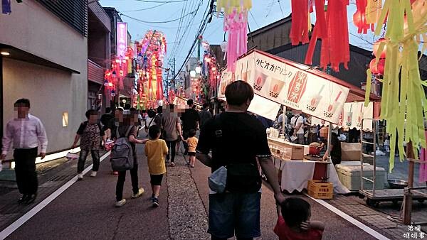 戶出七夕祭主要就在這條掛滿紅色燈籠和七夕裝飾的街道上,紅燈籠也是戶出比較特別的地方。從頭走到尾如果沒停下來買東西、停下來逛的話,來回不用40分鐘