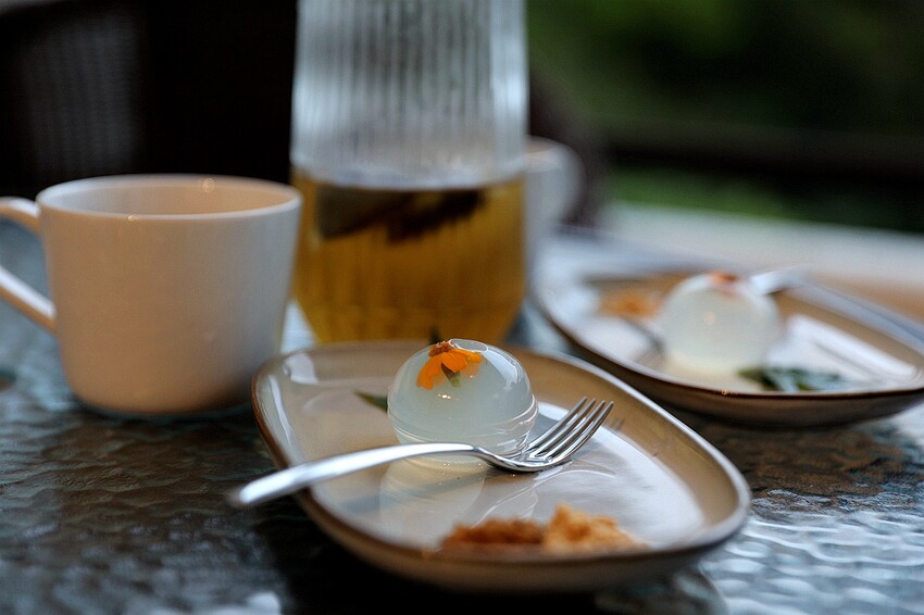 華裔廚師引進紐約後又稱為「雨滴蛋糕」裡面放著在地的食用花