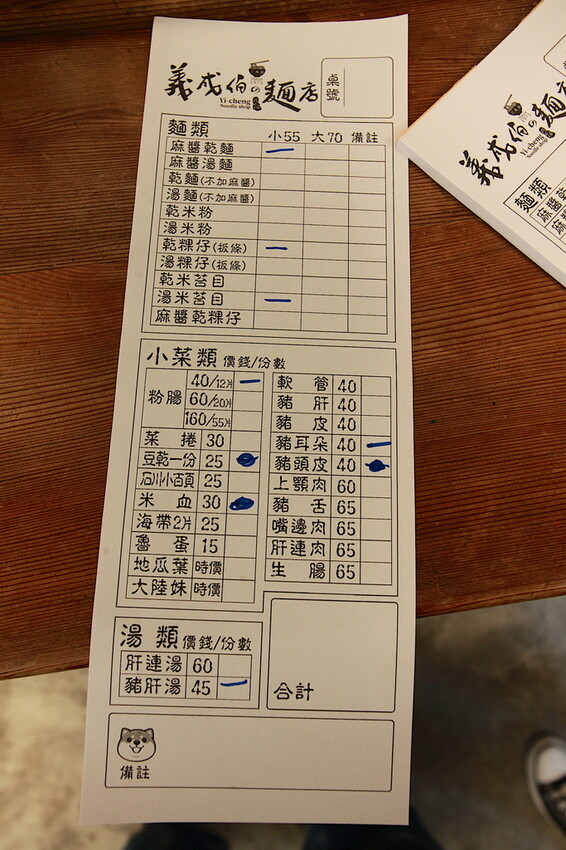 這張是店家點菜單供顧客自行畫選,菜單有麵類、湯類及湯類等分類,整體餐點定價是在合理範圍內,畫完菜單需先結完帳在等候帶位。