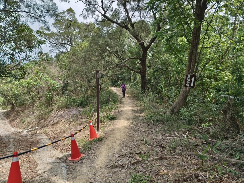 「林安森林步道」回程往萬聖爺廟每經過叉路口都有放置三角錐