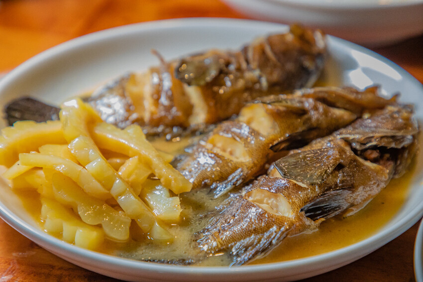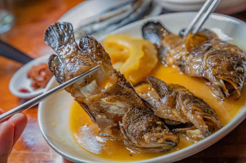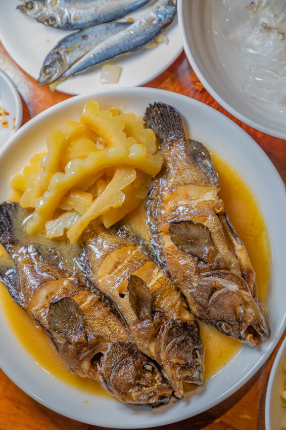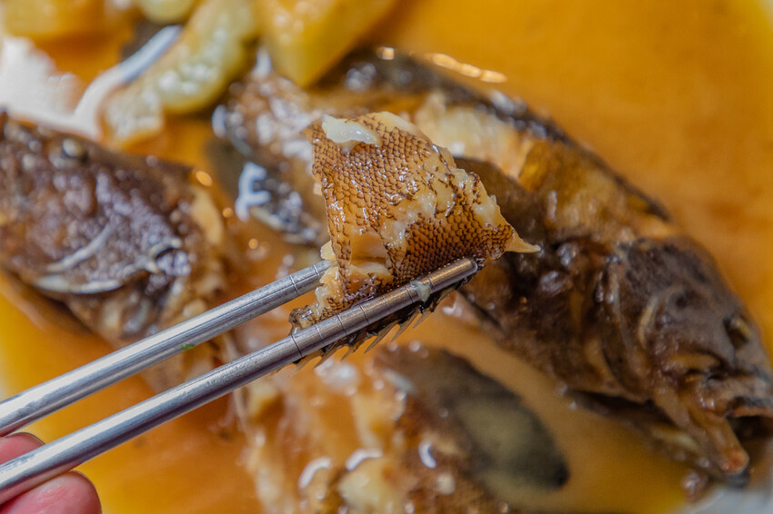 ▲用苦瓜一起煨煮過,那醬汁充滿了魚的鮮味跟苦瓜的清冽苦味,挾上一片沾著醬汁的魚肉,更是天作之合呀!