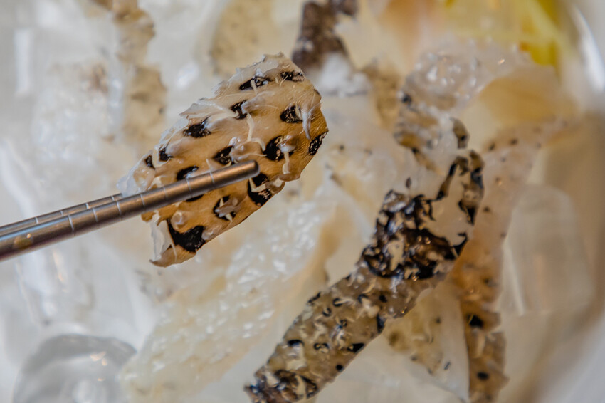 ▲是的,就是生氣時會漲的像顆球的河豚,可以看到河豚特有的皮紋,口感很Q,搜尋腦海中的資料庫,還找不到這樣子的口感。