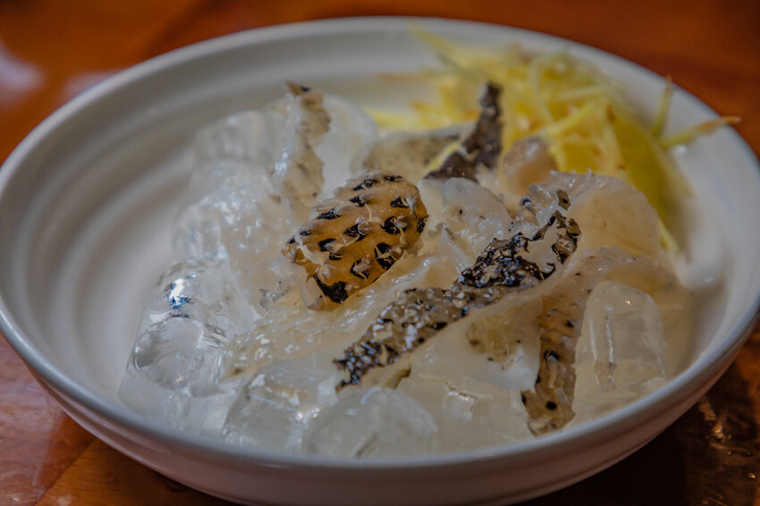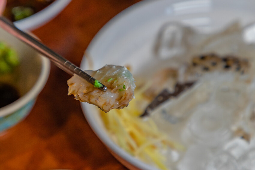 ▲但河豚本身無味,也無魚腥味,所以需滷醬油跟台式哇沙米來吃,滿滿的膠原蛋白,回家不用再敷面膜了。
