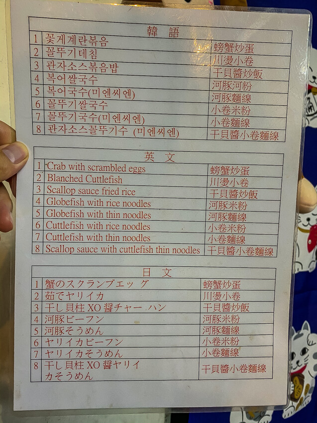 ▲還有英日韓的菜單,哈瑪星這裡遊客很多,所以很多店家都會提供多語菜單。
