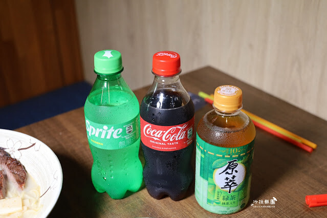 單點飲料:可樂、雪碧、綠茶,吃拉麵配可樂好清涼