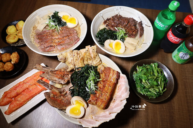 超霸氣的戰神拉麵,裝到滿出來,碗都裝不下,裡面有小戰斧*2+東坡肉+香嫩雞腿+叉燒肉*4+拉麵*2,這根本就是兩人份,大胃王快來挑戰