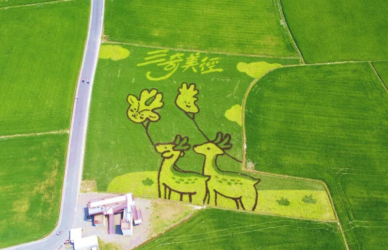 三奇美徑「小鹿風箏」彩繪稻田,把美麗的大地畫布點綴得更加療癒