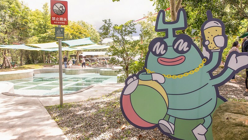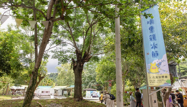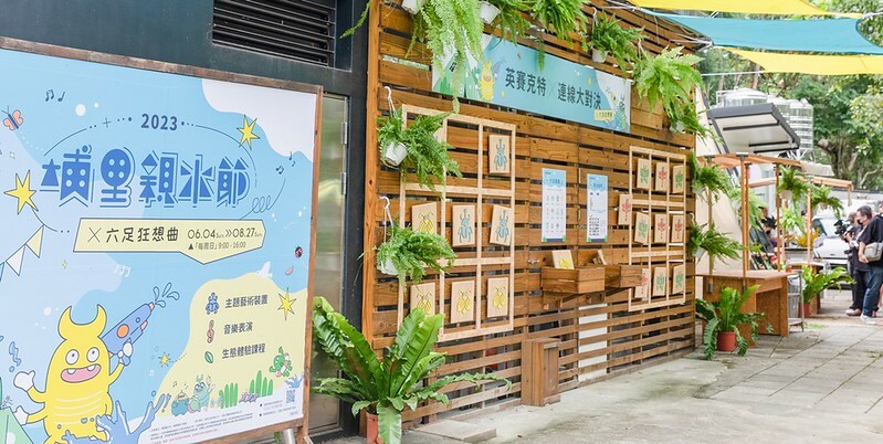 親水公園旁,可以清楚的看到附近生態常見的獨角仙、鍬形蟲、麻竹蛙的logo及立牌,玩水之餘也可以於林間散步,沒準可以跟這些兒時記憶中的好朋友來個不期而遇。