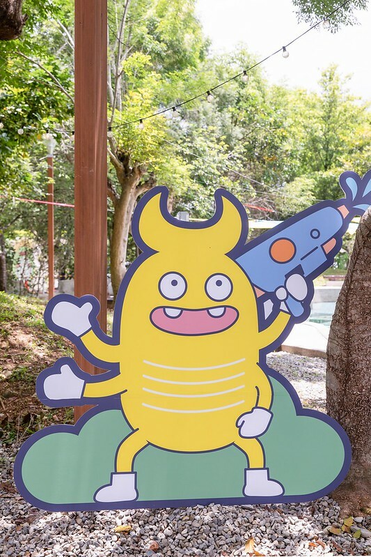 另外園園的周邊隨處可以看到桃米親水公園周邊的自然生態生物,如獨角仙、鍬形蟲、麻竹蛙陪你一起玩水的可愛的立牌。
