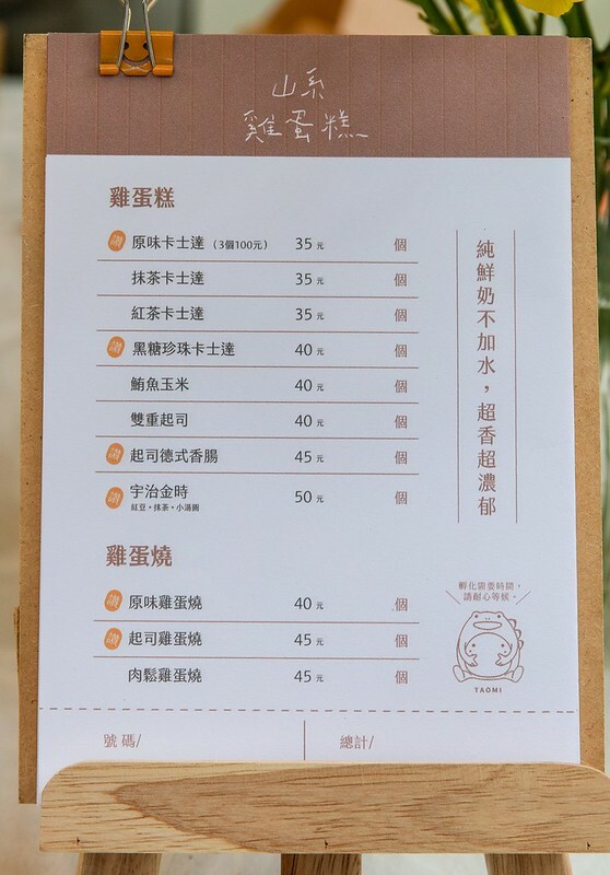 山系雞蛋糕每個35-50元間,可愛又美味,個人大推起半熟起司雞蛋燒,好吃得亂七八糟,雞蛋糕外觀烙上的埔里的桃里親水公園的麻竹蛙,一整個可愛。