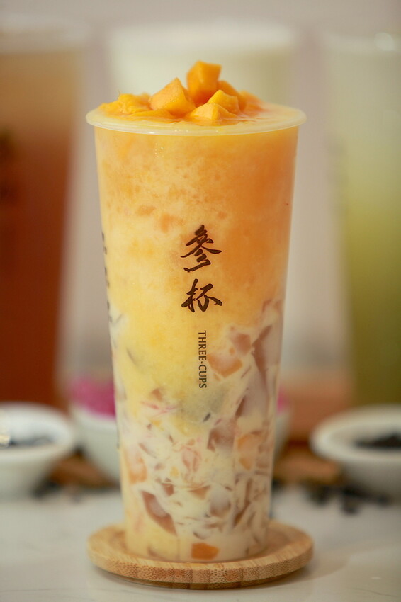 叁杯楊枝甘露採用芒果、柚子、鮮奶油、愛玉凍、仙草、茶玉、蘆薈及椰果等食材。