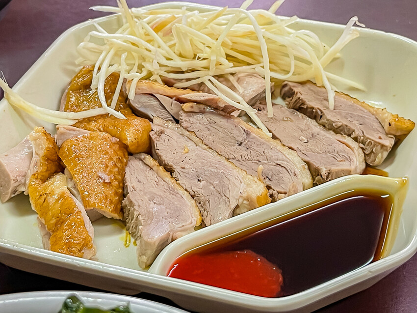 他們家的鴨肉特色有經過紅糖煙燻過,所以會帶著淡淡的煙燻香氣,搭配特調的酸甜醬汁,還頗為開胃的呢!