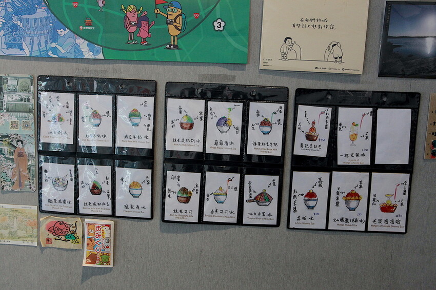 有一些刨冰菜單也畫在圖卡上供顧客參考,夏天當然選擇火山爆發芒果冰180元。