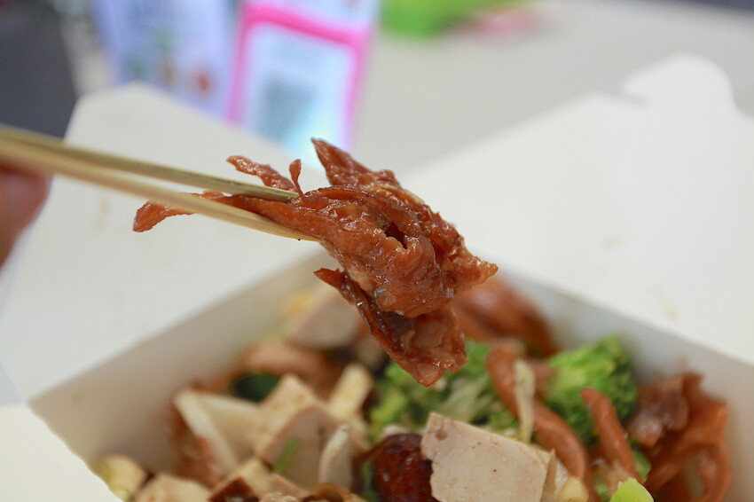這盒鹹水雞有豆干、豬耳朵、魯蛋白、豆皮、雞腳凍及綠花椰菜等等。