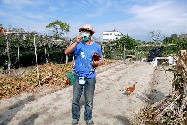 時間到集合撿雞蛋,太陽真的很大,老闆還幫我們準備傘遮陽。