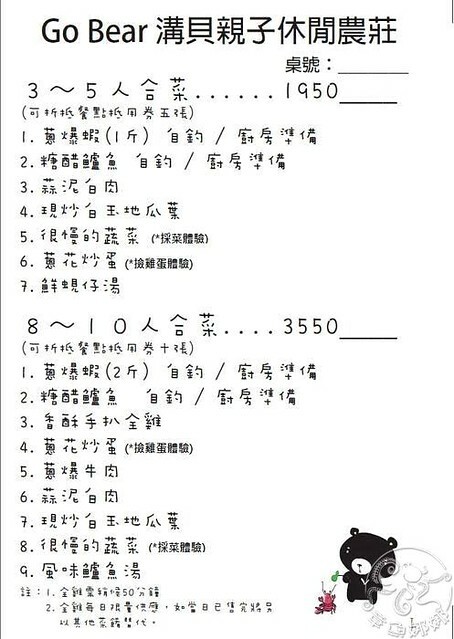 Go Bear 溝貝親子休閒農莊 菜單介紹&烤肉菜單
