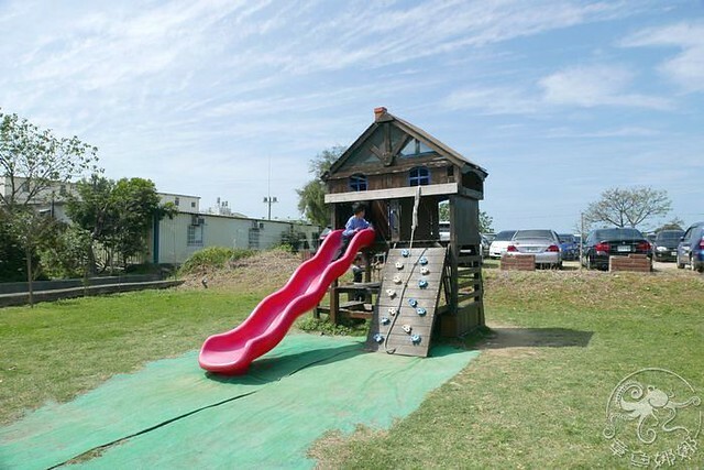 紅色棚子就是烤肉區,一旁就是大草皮與溜滑梯、mini滑草區。