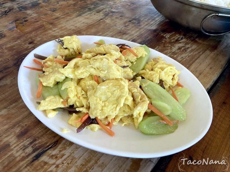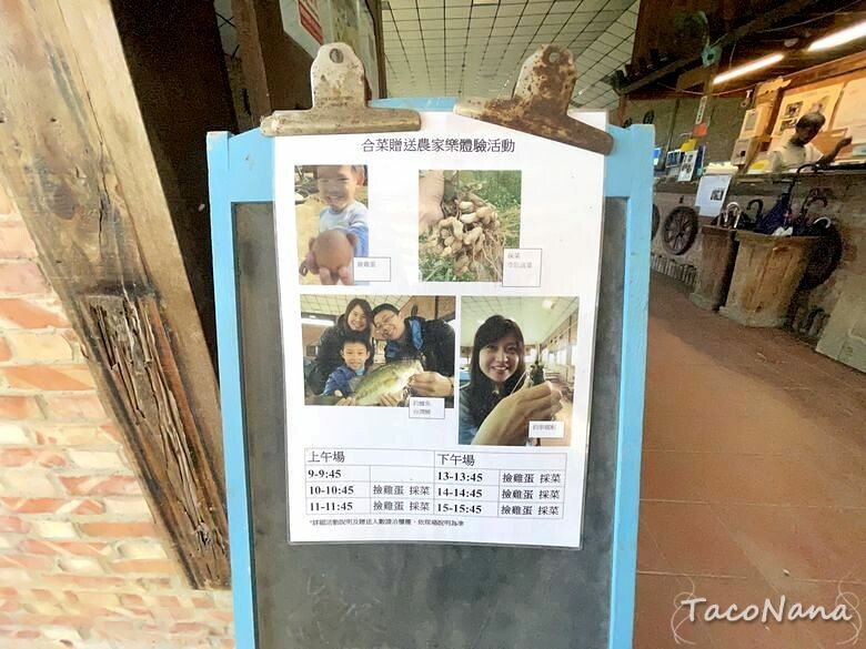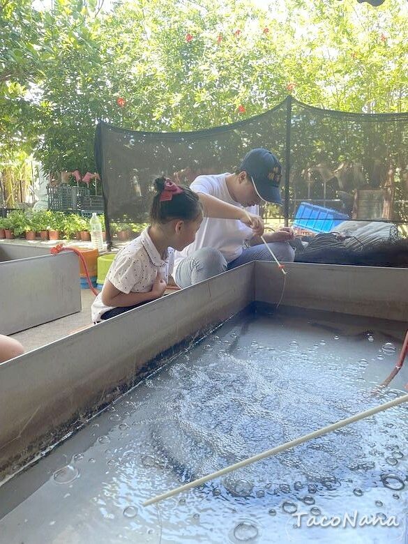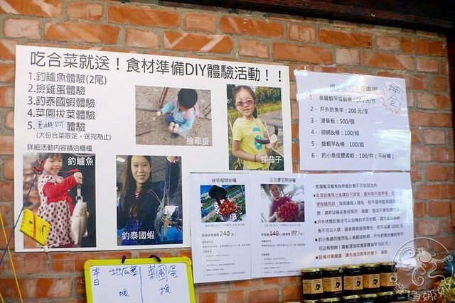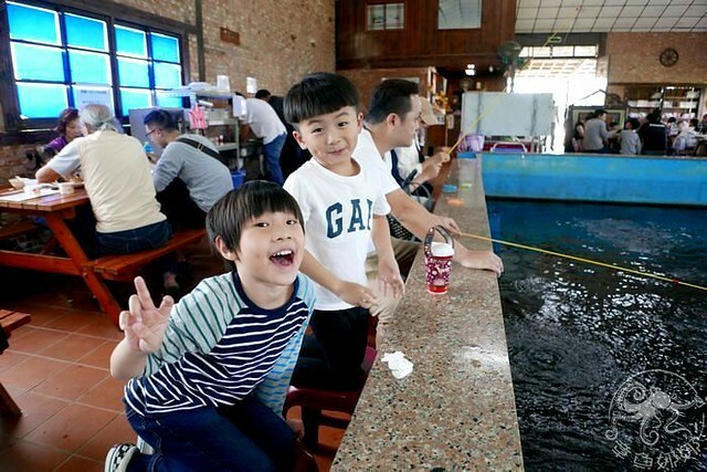 至櫃台買好門票後,就直接訂了當天的午餐,合菜裡的泰國蝦、魚、蛋,都是我們自己釣與採收的喔!當然我們就交給孩子們就好,難得有機會接近農物。