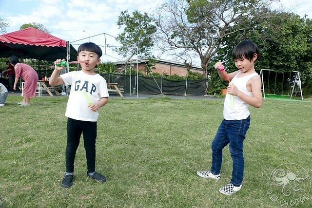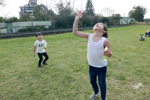 剛好車上有放泡泡水,小孩就在這大草皮玩,消耗體力!上車幾乎都秒睡。