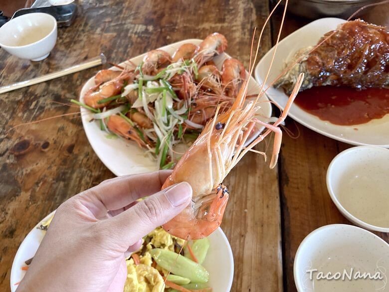 戰績是釣3尾泰國蝦,這怎麼夠吃呢?沒關系,不夠的廚房會替我們準備的。