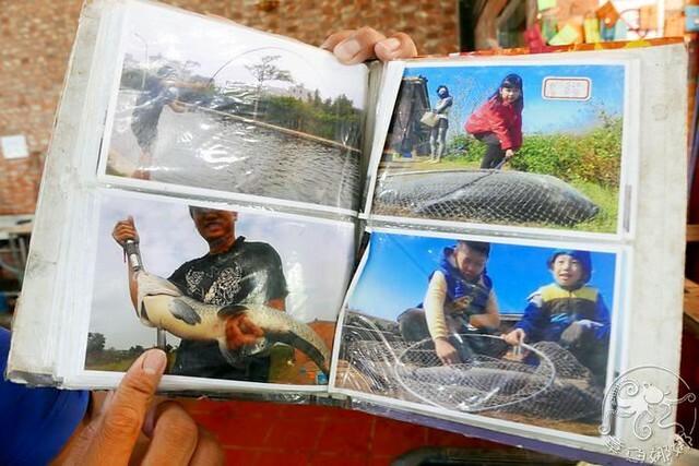 老闆還拿出戰績本給我看,告訴我戶外的魚池可以釣到什麼魚?這照片裡的魚還真大隻!