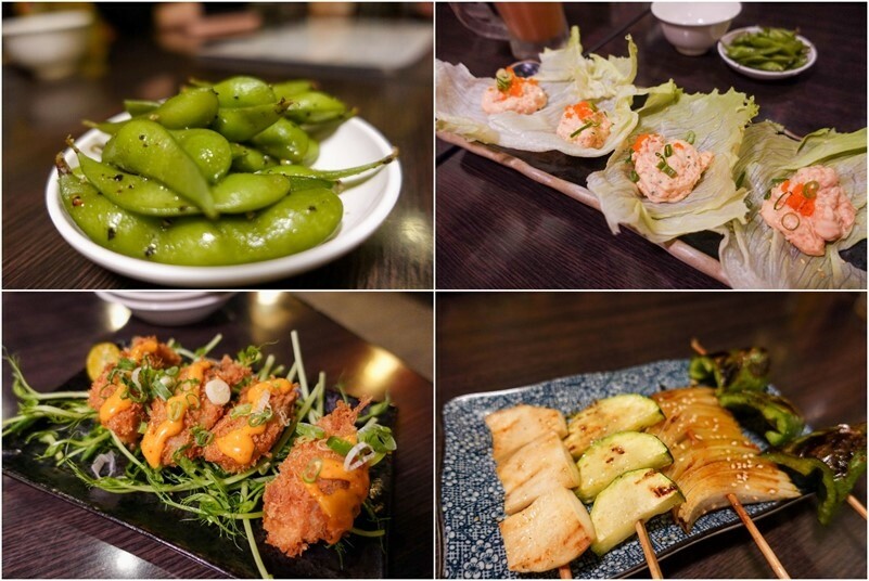 每一桌都會有一盤毛豆小菜,右上角是龍蝦沙拉捲,龍蝦肉搭配清爽沙拉,整個很開胃,適合吃居酒屋的第一道前菜!