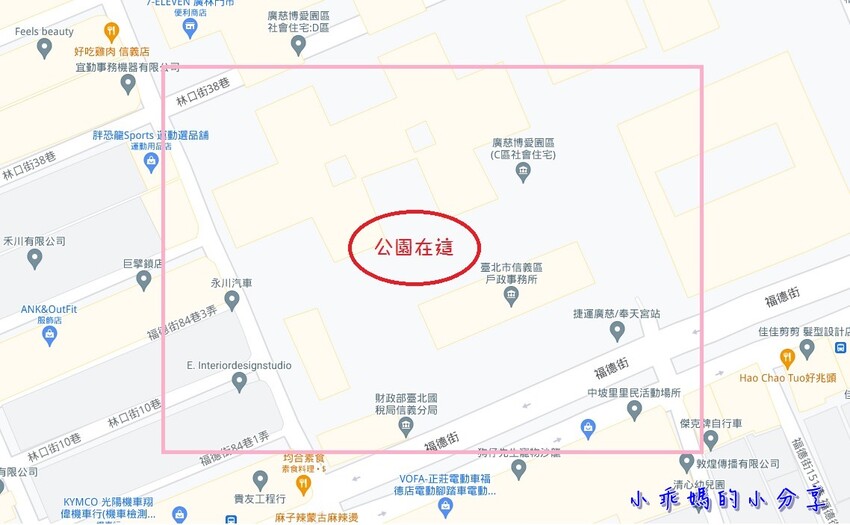 ▼因為廣慈博愛園區蠻大的,怕大家找不到公園,特別在google標示出來給大家看~~~~