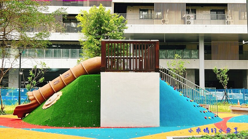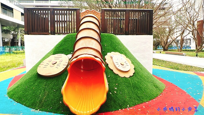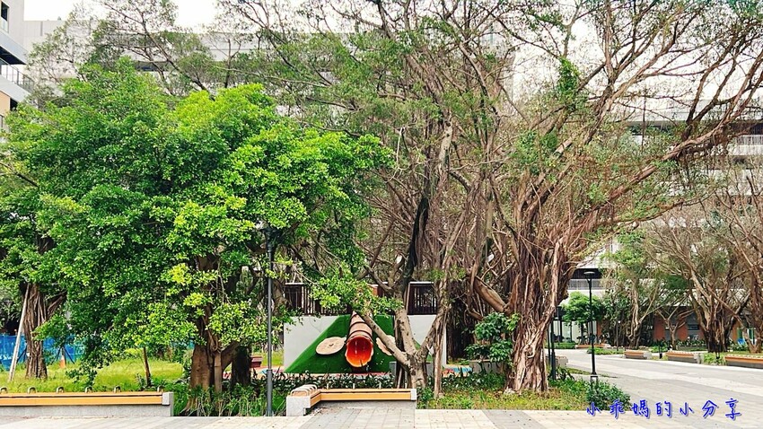 剛好我們家就住附近,所以我們後來就來玩非常多次,可能是新公園,所以沒什麼人知道,人少也不錯~哈哈!然後特色溜滑梯又在高大的樹木底下,有點被擋住了…