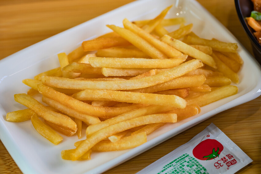 ▲細細的薯條好可愛,吃起來比較細緻,而且口感鬆軟,沾點番茄更好吃,全世界都愛吃的馬鈴薯小點心。