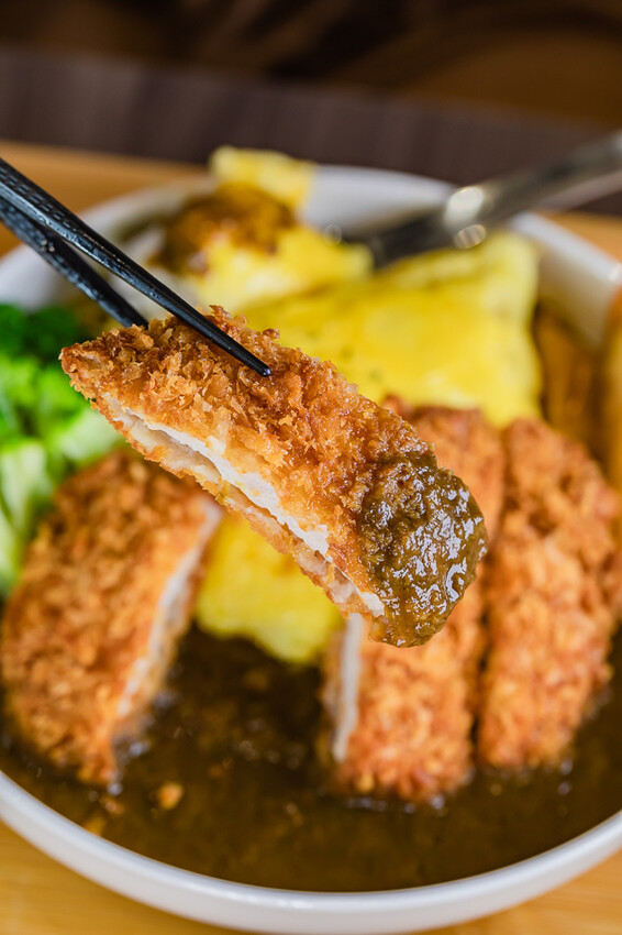 ▲▼咖哩鹹香滋味帶著迷人的胡椒香氣與辣度,醬汁不是濃稠風格,吃起來比較滑順,屬於日式黑咖哩風味。