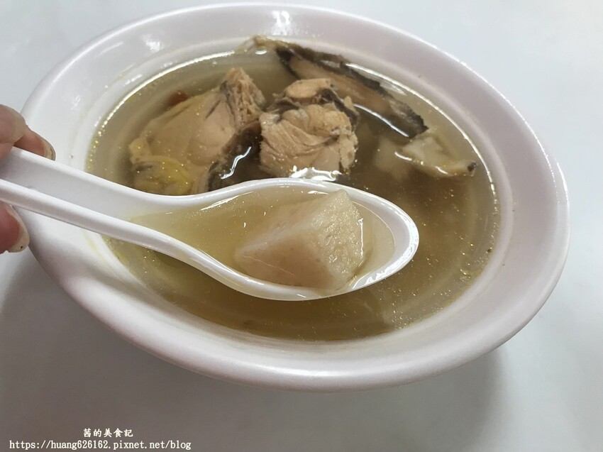山藥當歸雞湯 湯頭喝起來很甘甜,但雞肉吃起就略澀,個人覺得熱湯還是冬天來喝會更適合~
