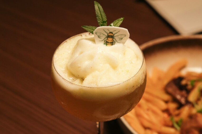 ▼茶之蜂是以日本琴酒為基底的經典雞尾酒,頂頭蓋上綿密的青蘋果泡沫,入口散發淡淡檸檬及茶香,喝起來相當清爽順口。
