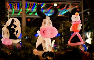煙火結束之後,順著愛河邊的花燈一攤一攤的呈列著,今年的主題應景牛年,仍是