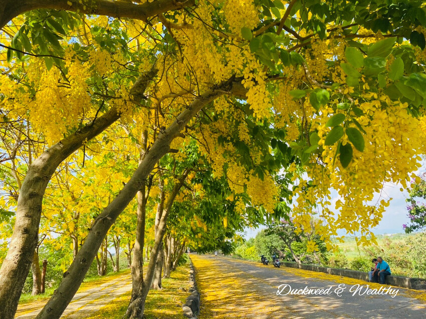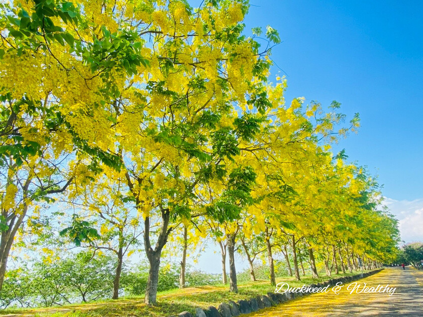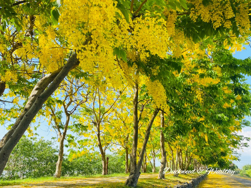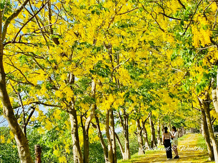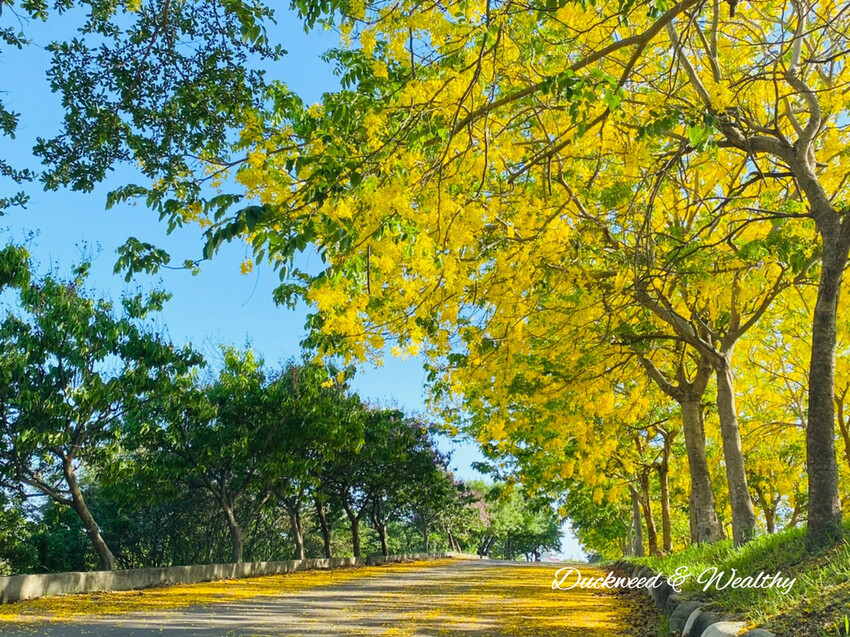 長長阿勃勒交織形成美麗的金黃隧道,美不勝收!!