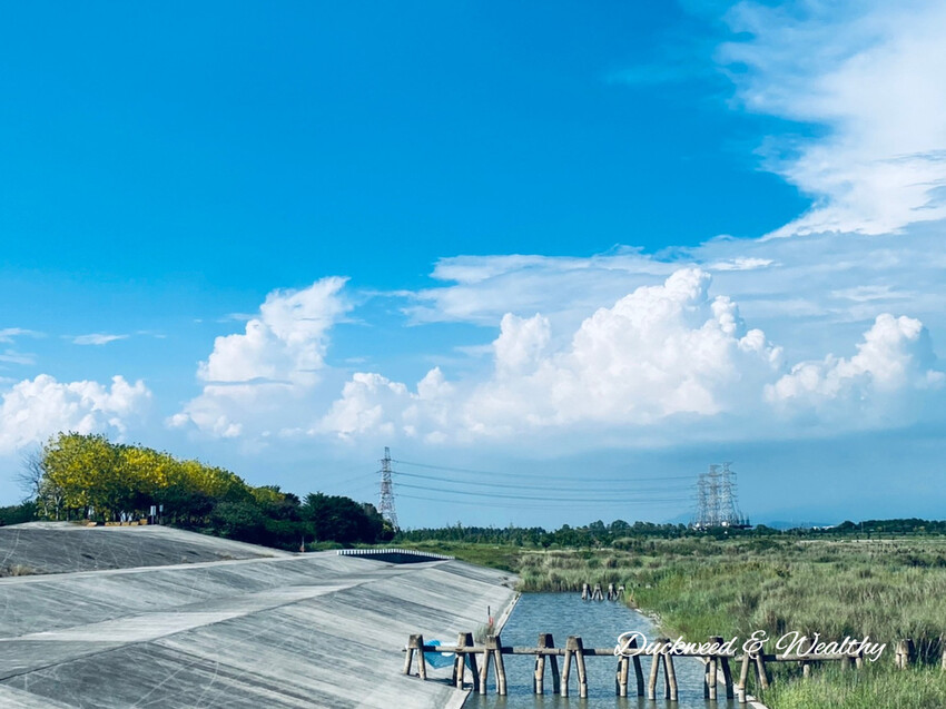 「蘇厝河堤公園」一眼望去整個堤防無限延伸無止盡般,