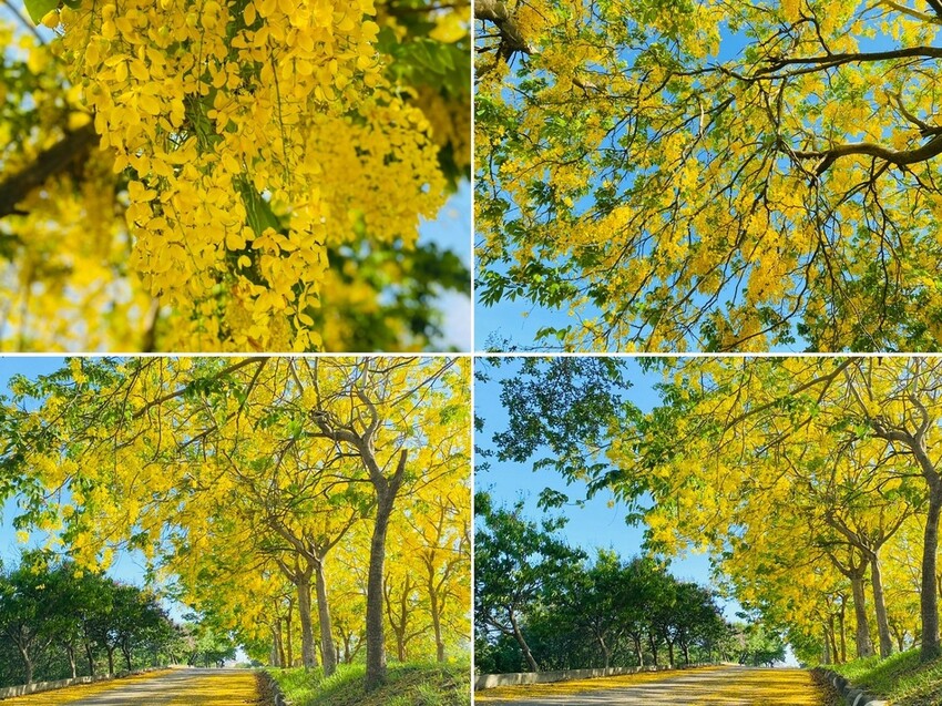 樹全長約100公尺,兩排阿勃勒花樹密集盛開,交織形成美麗的金黃隧道,