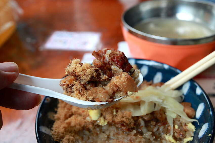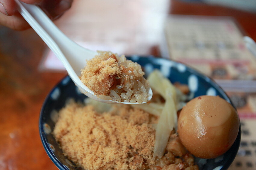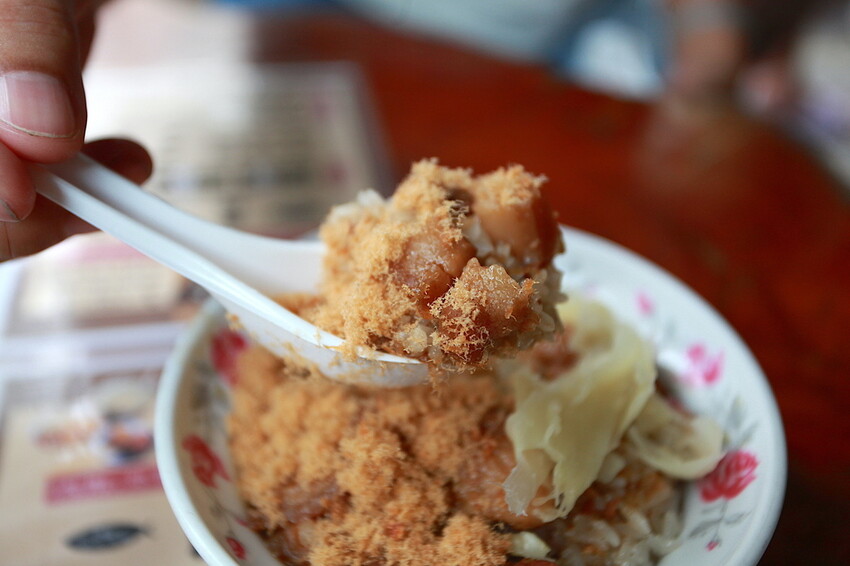 小高覺得店家很大方魚鬆份量很多,且這肉燥肥肉和瘦肉比例大概是1:1,切這肉燥都是手工來切成小塊狀。