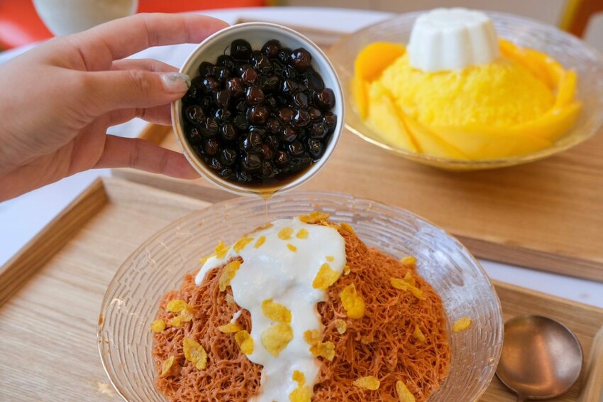 ▼甜點控必吃這款珍的泰奶,淋上鹹甜的奶蓋和玉米脆片,還有珍珠瀑布口感超豐富,泰奶口味的雪花冰很濃很香,就像直接在喝泰奶一樣過癮!