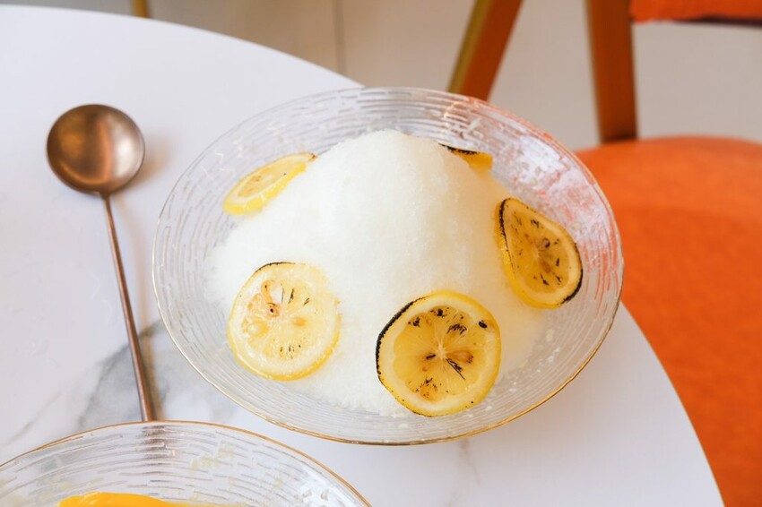 ▼充滿酸甜香氣的青檸蜜夏,基底雪花冰有著檸檬的酸香,同時伴隨著蜂蜜的甜味,除了頂頭的炙燒檸檬片,還能挖到清爽的愛玉在裏頭,是很消暑解膩的一款冰品。