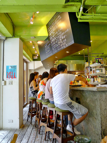 話說,隱身在巷子內的樂子咖啡還滿好找,一進入店內即見開放式廚房與吧檯,地下室也設有雅座。